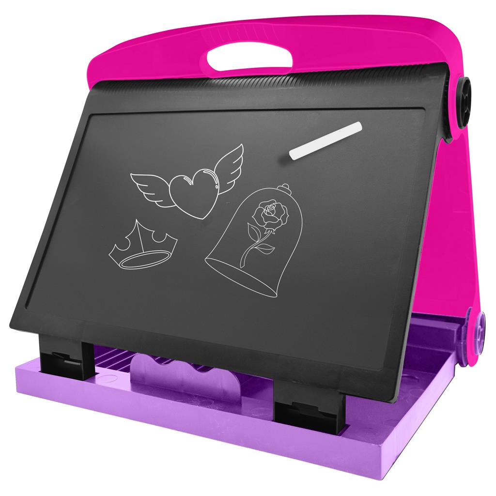 • Include: easel, creioane, cretă, burete, șabloane și pagini de colorat.