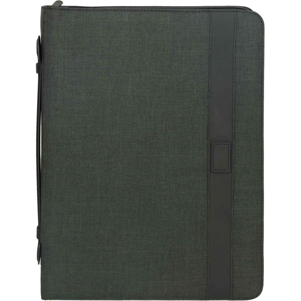 Descoperă eleganța și funcționalitatea mapelor de birou Vertigo A4, un accesoriu ideal pentru profesioniști. Realizată din material textil negru melanj, această mapă de birou dispune de fermoar pentru siguranță, mâner pentru transport facil și mecanism metalic pentru prinderea hârtiei, asigurând organizare și stil în orice mediul de lucru.