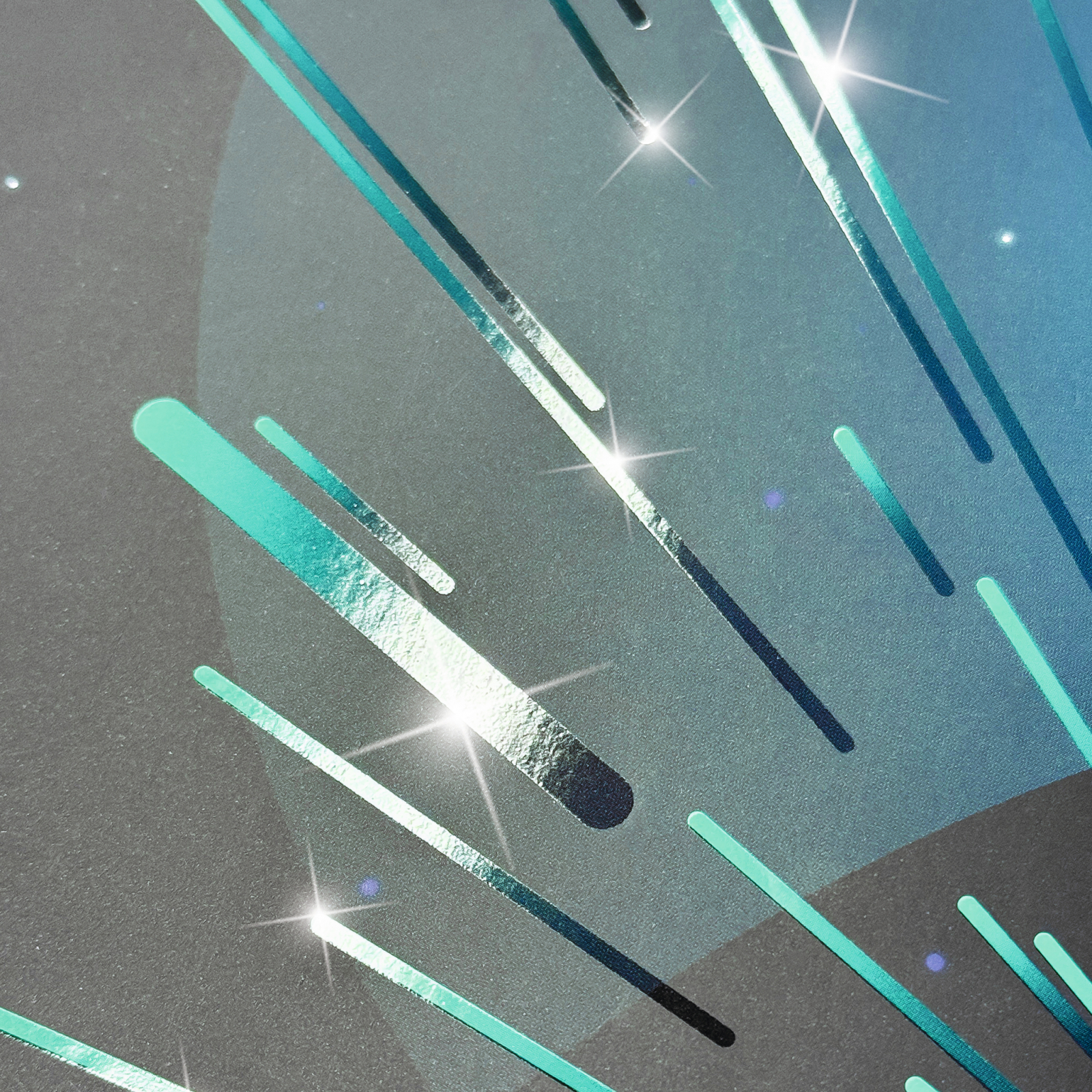 🎨 Design atractiv cu motiv Roboți în nuanțe de albastru închis, verde și lila, cu finisaje metalice pentru un aspect modern și futurist