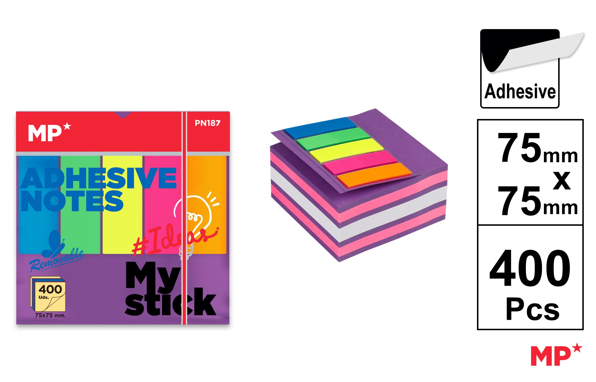 Repoziționabile: Adezivul special permite mutarea notelor fără a deteriora suprafața pe care au fost lipite. Cutie cubică: Ambalajul practic oferă acces facil la cele 400 de note din set. Dimensiune compactă: Notele pătrate de 75x75 mm sunt ideale pentru notițe scurte. Hârtie de calitate: Gramajul de 75 g/m² asigură o scriere ușoară și fără pete. Culori intense: Setul include note mov, roz și albe pentru o organizare vizuală eficientă.Beneficii: