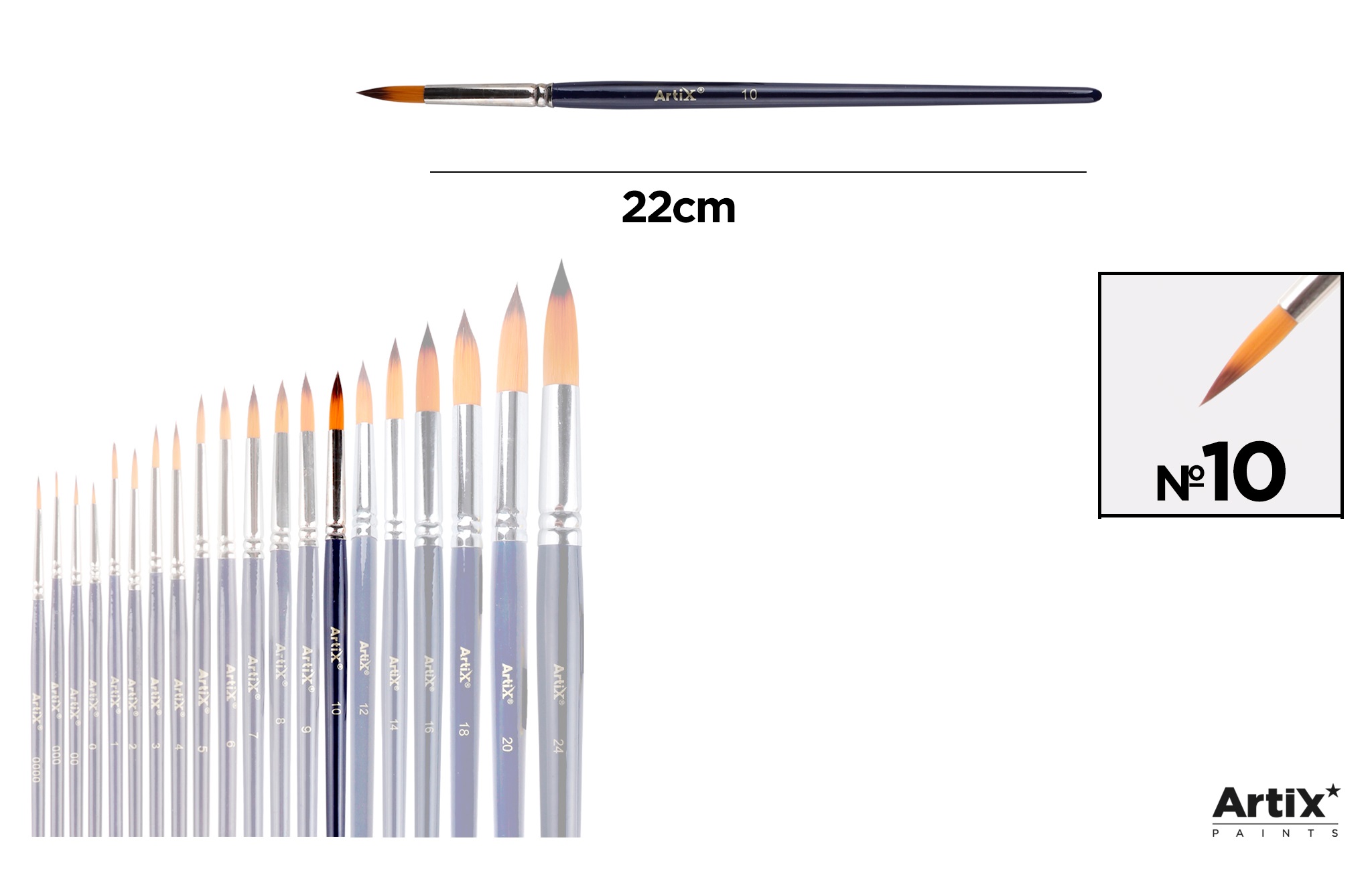 Pensula profesionala din par sintetic, cu varf rotund si coada scurta, Artix.