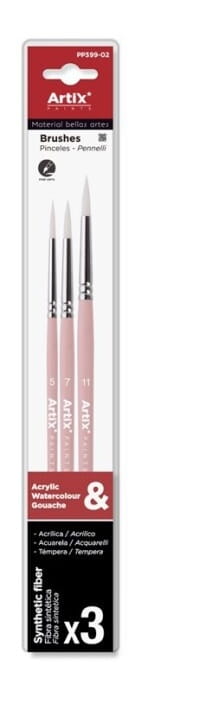 Pensule IPB Profesionale 3/Set Nr. 5, 7, 11 Vf.Rotund PP399-02 Descriere:Acest set de 3 pensule profesionale IPB este ideal pentru artiștii care doresc pensule de înaltă calitate, versatile și durabile. Pensulele sunt fabricate din peri sintetici albi foarte moi, perfecte pentru a aplica tempera, vopsele acrilice și acuarele.