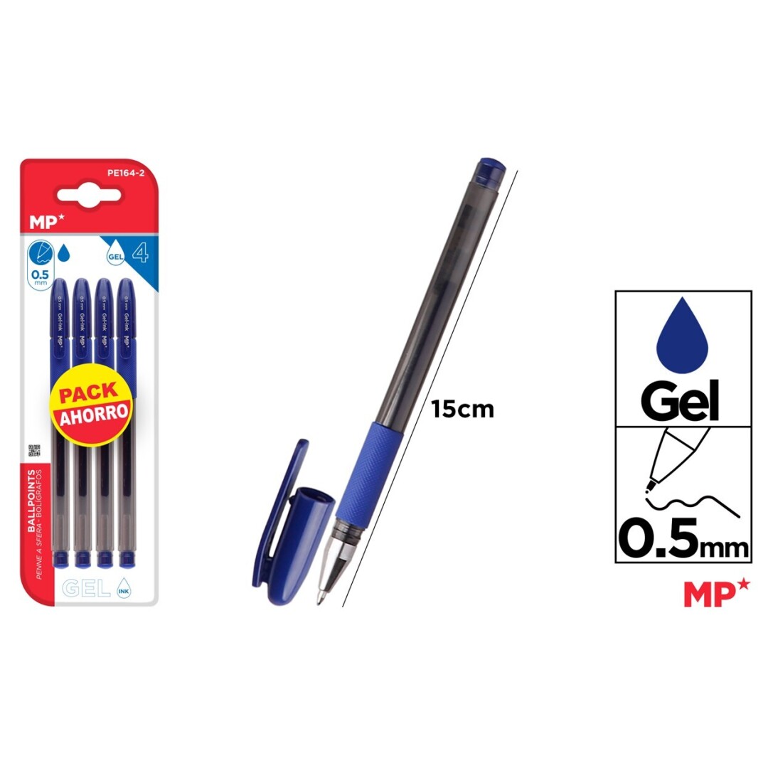 Set de pixuri cu gel IPB, cu vârful de 0.5mm, în culoarea albastru. Ideal pentru scrierea fluentă și precisă. Ambalajul conține 4 bucăți.