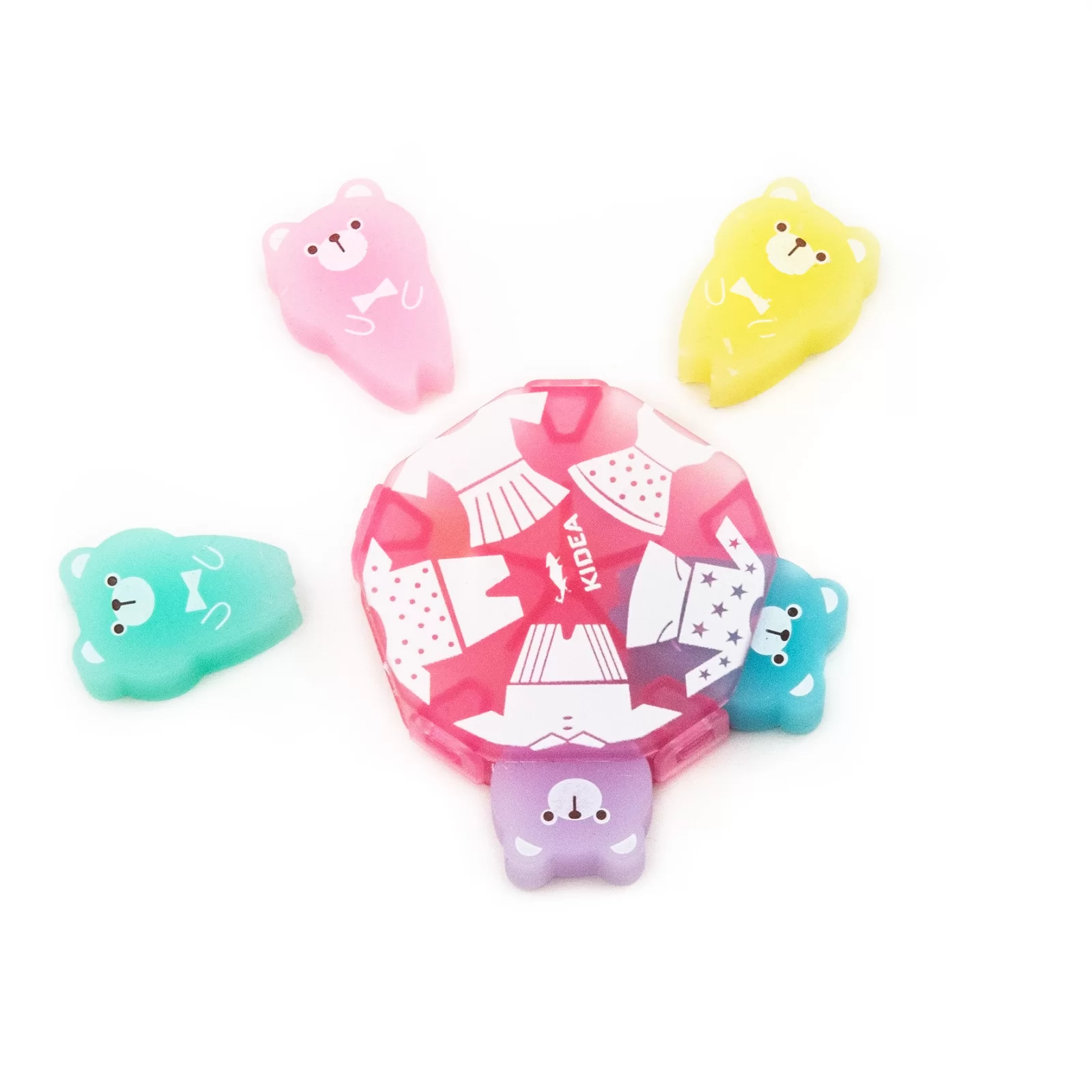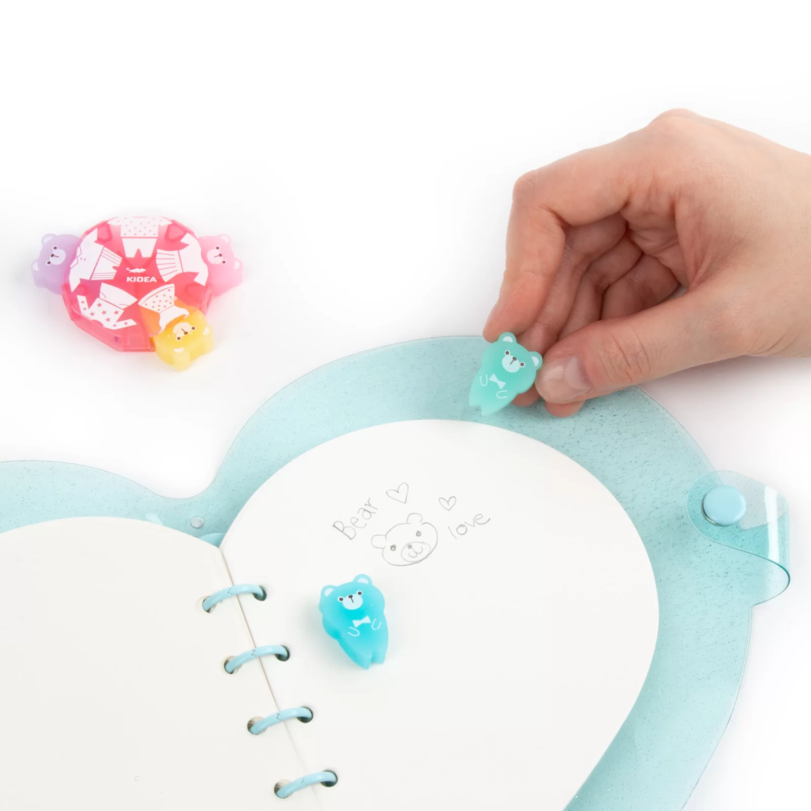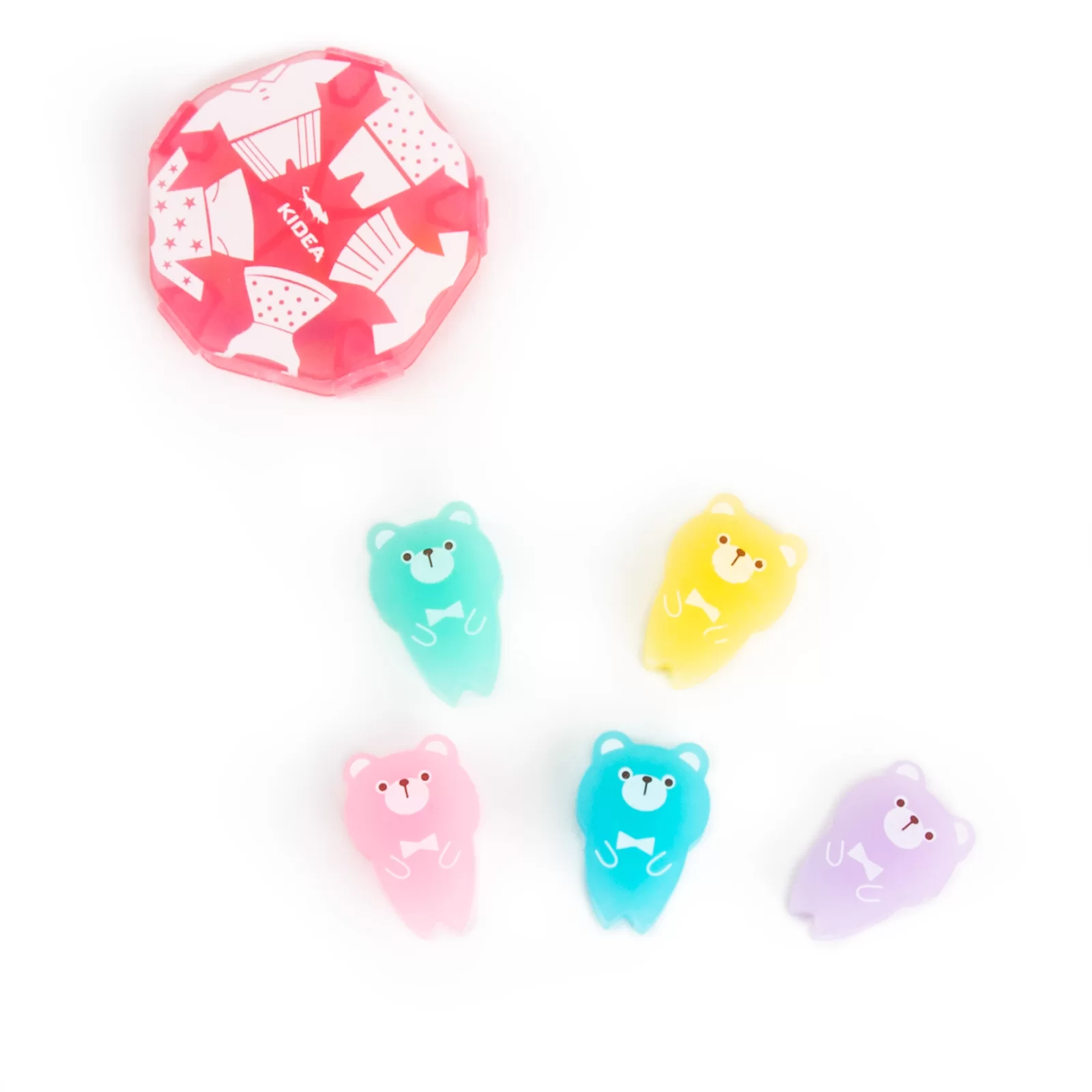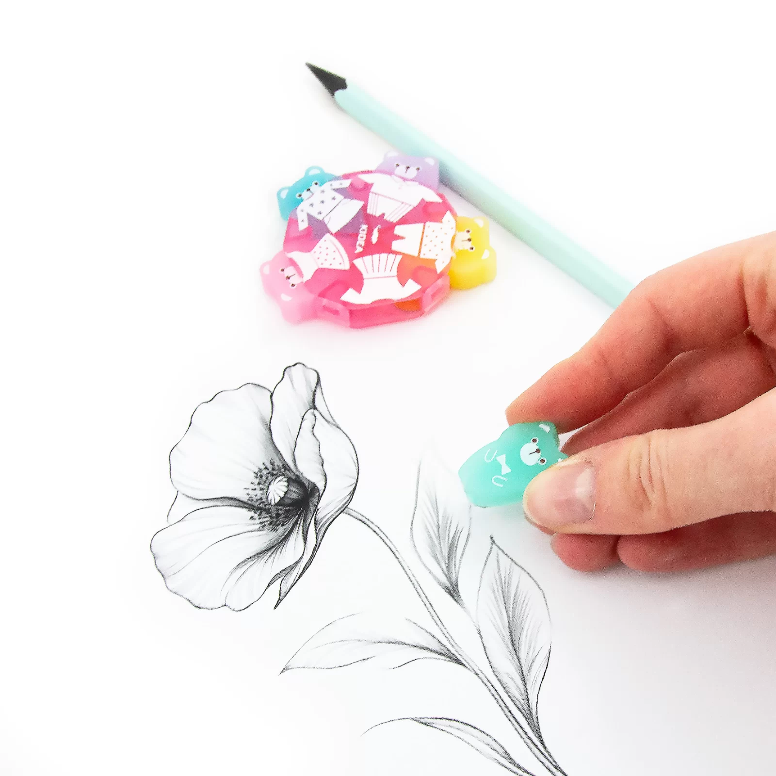 Setul de 5 radiere parfumate GZ5KA include radiere adorabile în formă de ursuleț de pluș, cu carcasă rotundă și practică pentru depozitare și înlocuire ușoară, fiind ergonomice, confortabile de ținut în mână și compacte, ideale pentru a fi purtate mereu în penar.