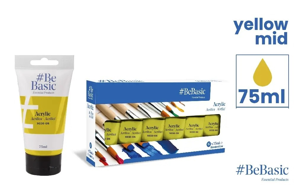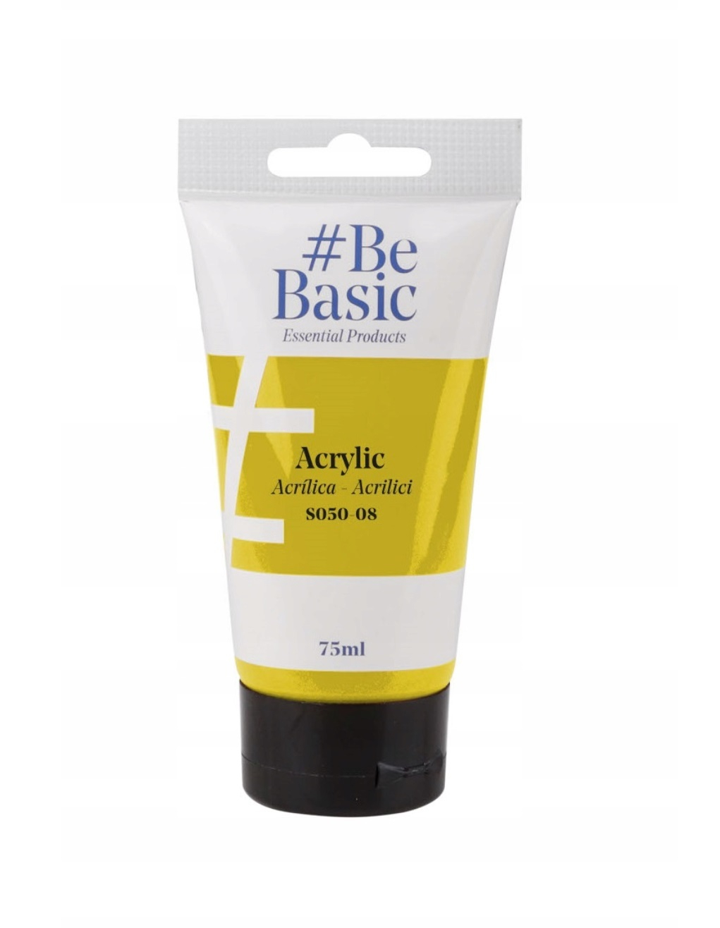 Vopsea acrilică BeBasic Satin 75ml galben S050-08 – pentru un efect vibrant și luminos în creațiile tale artistice!