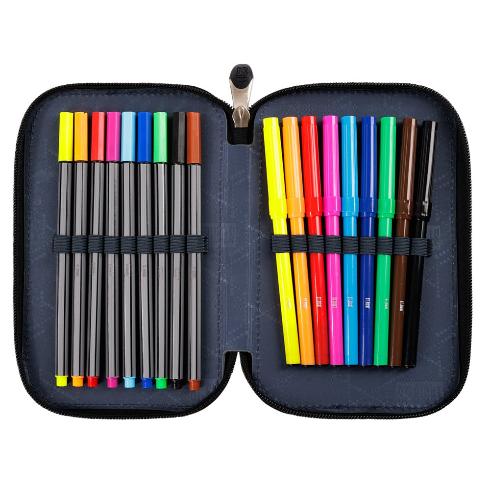 🎒 Penar cu 3 compartimente închise cu fermoar, echipat cu 45 de instrumente de scris, perfect pentru elevi și preșcolari