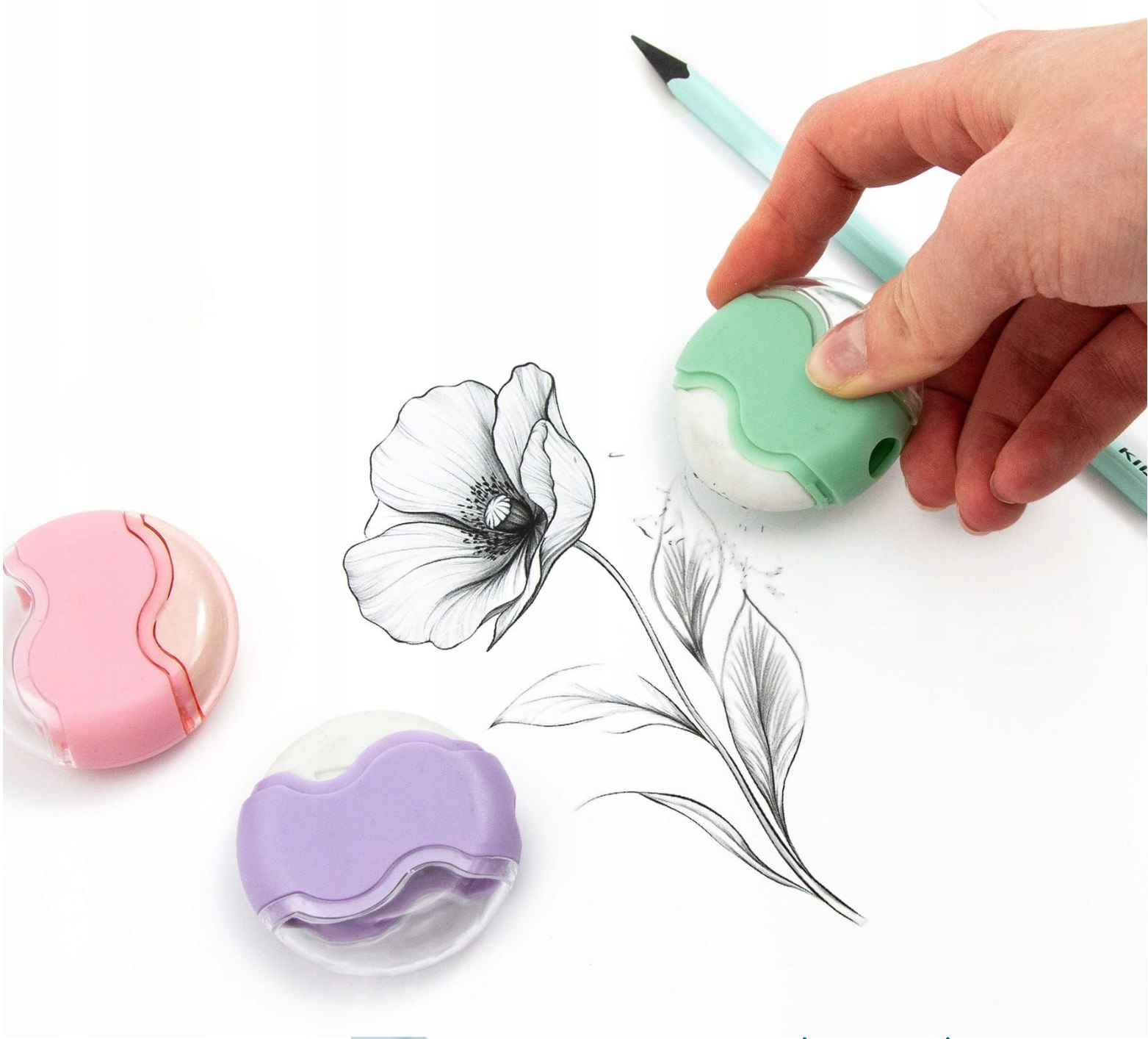 🖊️ Ascuțitoare dublă cu container pentru resturi, combinată cu o radieră pastel de calitate superioară, perfectă pentru notițe și desen