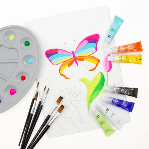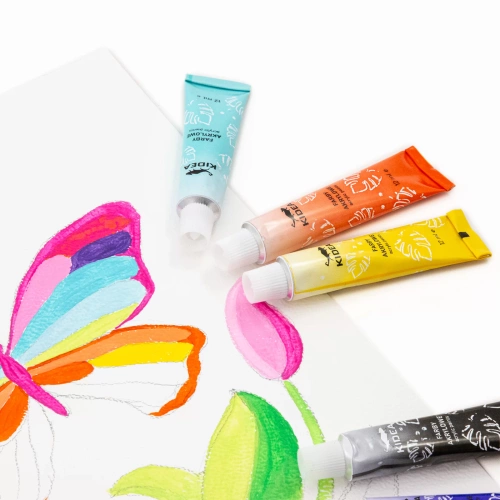 Setul de vopsele acrilice Kidea FAA12KA aduce o paletă vibrantă și intensă pentru pasionații de artă și pictură!