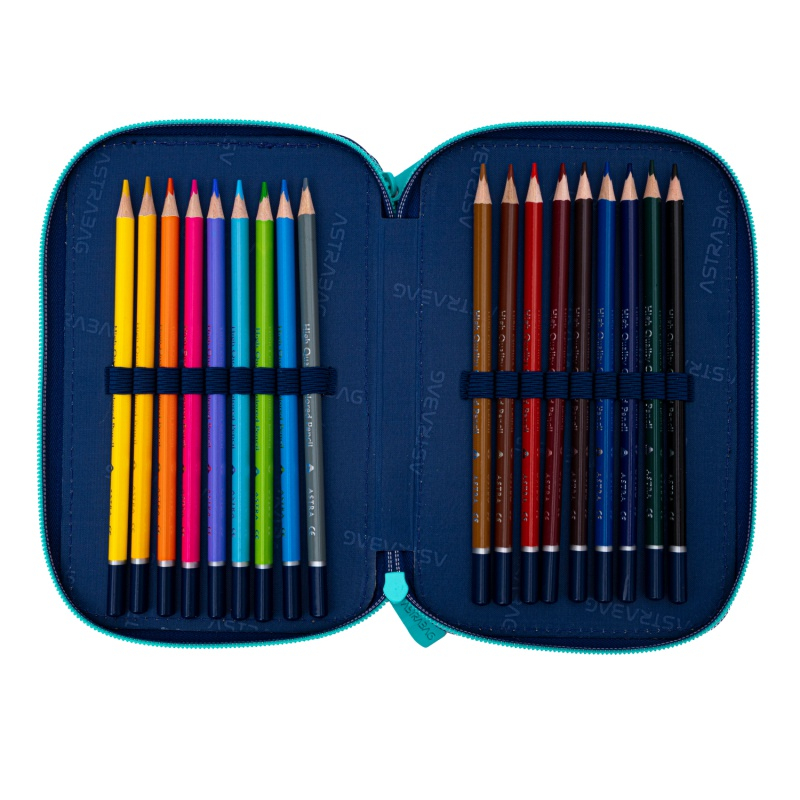 🎨 Dotare PREMIUM completă: 18 creioane colorate ASTRA, 9 markere ASTRA, pix cu bilă ASTRAPEN, creion ASTRAPEN, ascuțitoare, radieră și riglă, toate de calitate superioară