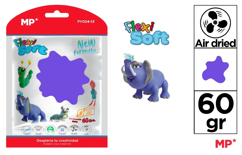 Descoperiți pasta de modelare Flexi Soft cu o formulă nouă (New Formula), un material ideal pentru a stimula creativitatea și a realiza figurine ușoare și rezistente. Este o plastilină tip spumă (foam clay) care se usucă la aer (Air dried).