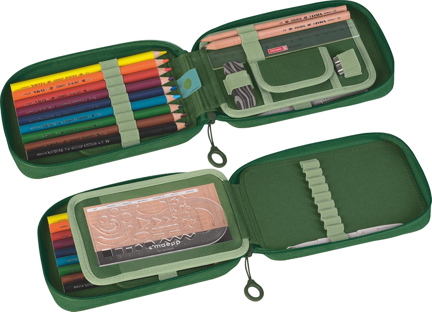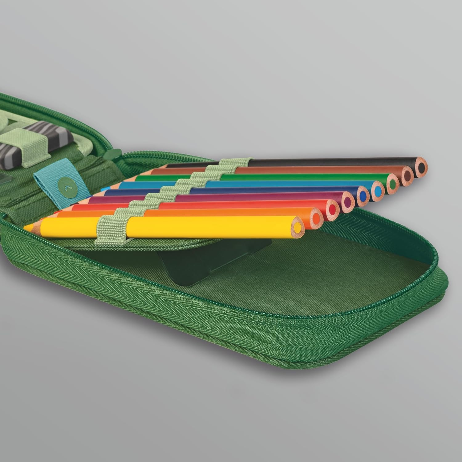 Organizare Completă: 🦖 De la creioane groase ideale pentru mâinile micuților, până la buzunarul securizat pentru bani, totul are un loc bine definit.