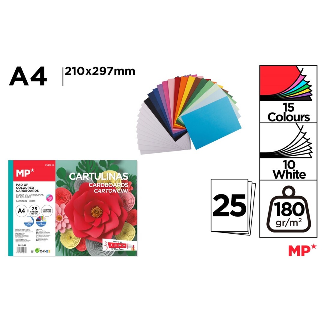 Cardboard block for crafts and school use. Idealforall kinds of crafts, lettering, scrapbooking,covers,dividers, origami, document printing.Suitablefor school use, as they are acid free.Blockof 25 sheets in 180 g/m2. A4 size.Measurements:210 x 297 mm. Assorted colours.
