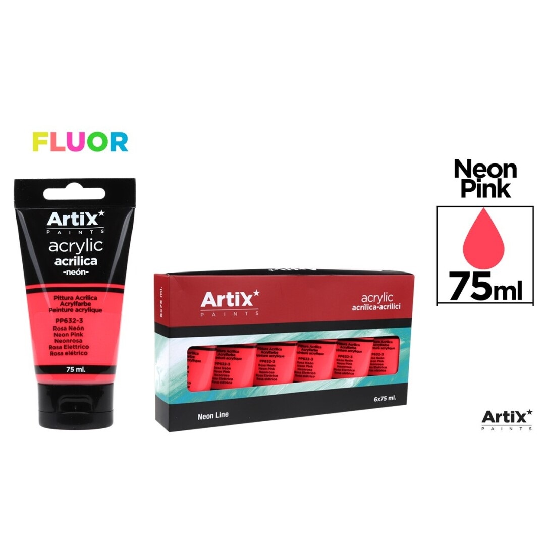 CULORI ACRILICE IPB 75ML ROZ NEON PP632-3 - Vopsea acrilică satinată de înaltă densitate cu pigmenți strălucitori, conținută într-o emulsie de polimer acrilic, perfectă pentru obținerea unor nuanțe reale și consistente în pictură. Uscare rapidă. Ideală pentru artiștii profesioniști, începătorii în pictura cu acrilice, iubitorii de pictură și copii. Consistența sa groasă menține marcajele cu pensula sau spatula în condiții perfecte și conferă o textură lucioasă lucrărilor.