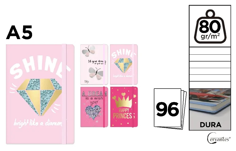 Etichete: școală, CU ELASTIC, Papetărie, Rafinat, CERVANTES, 96 file, Copertă Dură, Design Perfection, caiet A5, elegant, Birou, notes