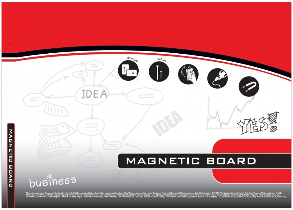Tabla alba magnetica cu rama din aluminiu si suport pentru markere. Suprafata scriere rezistenta la actiunea acizilor si zgarieturi. Scriere cu markere lavabile, stergere cu burete sau servetele.
