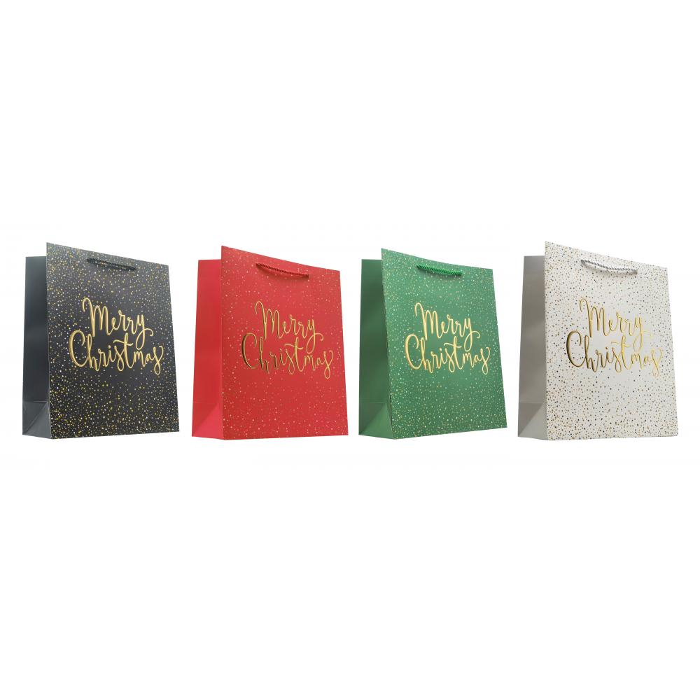 Sacoșa se încadrează în mărimea L și are dimensiunile generoase de 26 cm lățime, 12 cm adâncime și 32 cm înălțime. Este confecționată dintr-o hârtie de înaltă calitate, având o gramatură de 210g, ceea ce îi conferă o rezistență deosebită pentru a susține cadouri mai grele.
