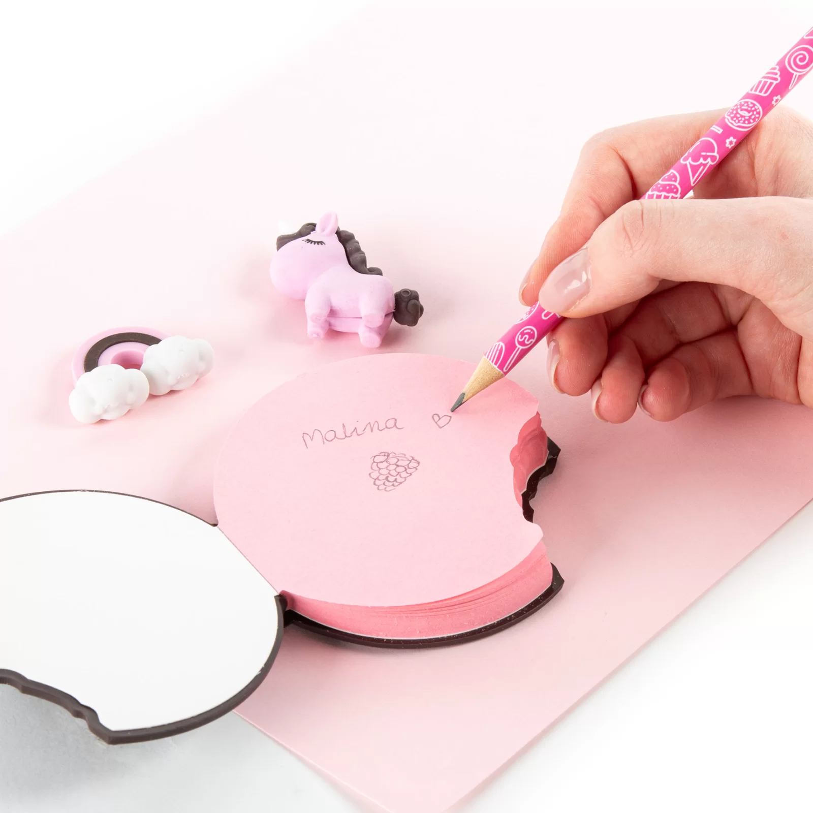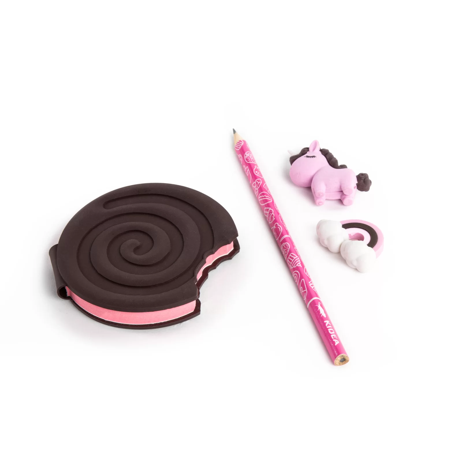 Descoperă setul școală Kidea PPAWKKA cu parfum de zmeură, un combo fermecător și delicios pentru micii iubitori de scris și dulciuri! Acest set de 4 piese include un jurnal de culoarea cremei de zmeură, decorat cu motive cofetărie, două radiere parfumate cu aroma de zmeură și un creion asortat, toate într-un design atractiv și jucăuș. Cu 80 de pagini netede, ideale pentru notițe, secrete sau amintiri speciale, acest set combină funcționalitatea cu un aspect dulce și parfumat, fiind cadoul perfect pentru tineri creativi și pasionați de dulciuri.