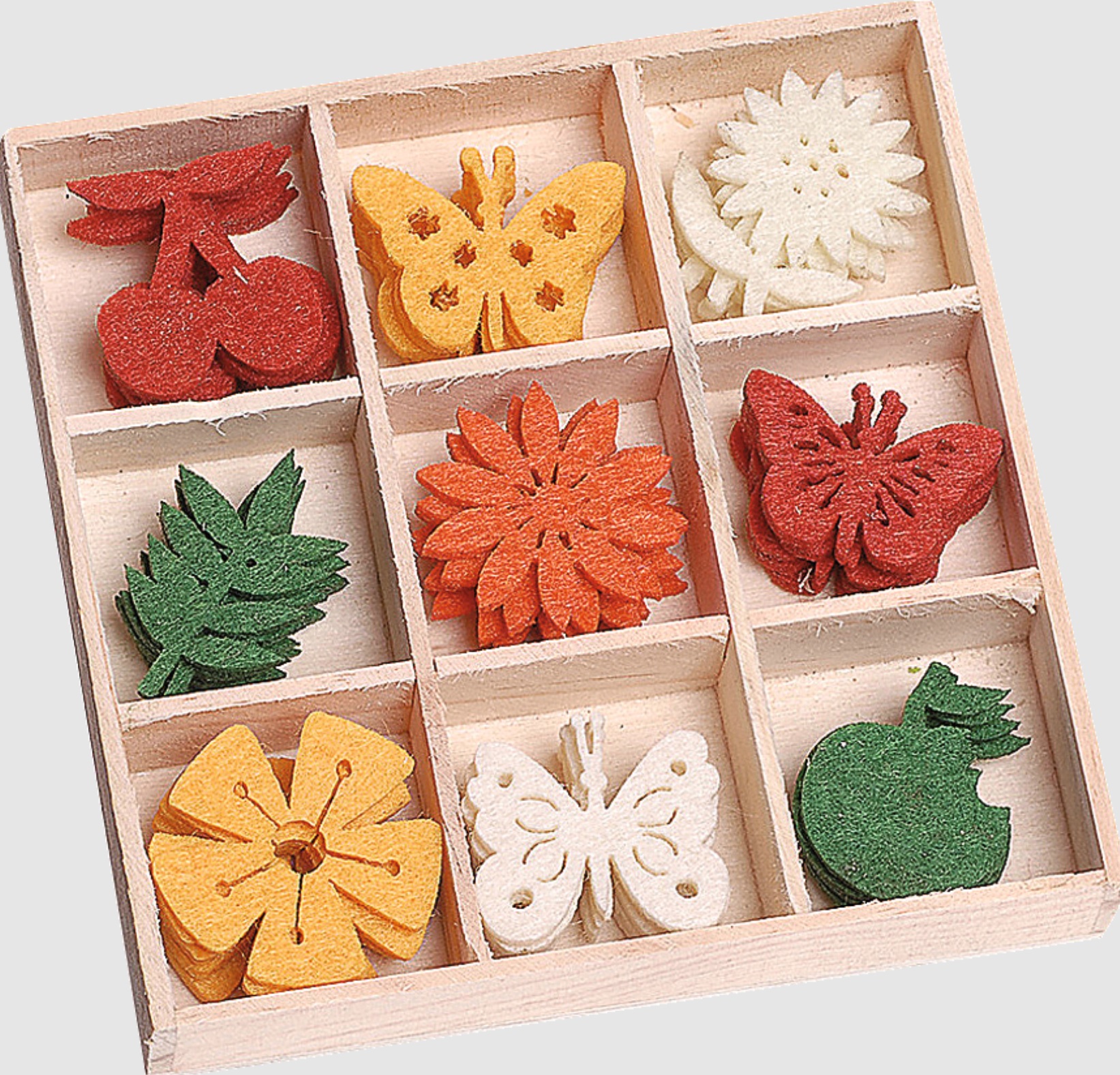 DECORATIUNI PASLA - SET FRUCTE, FLUTURI, FLORI (Cod 8001208) - Ornamente din Filt pentru Proiecte Creative