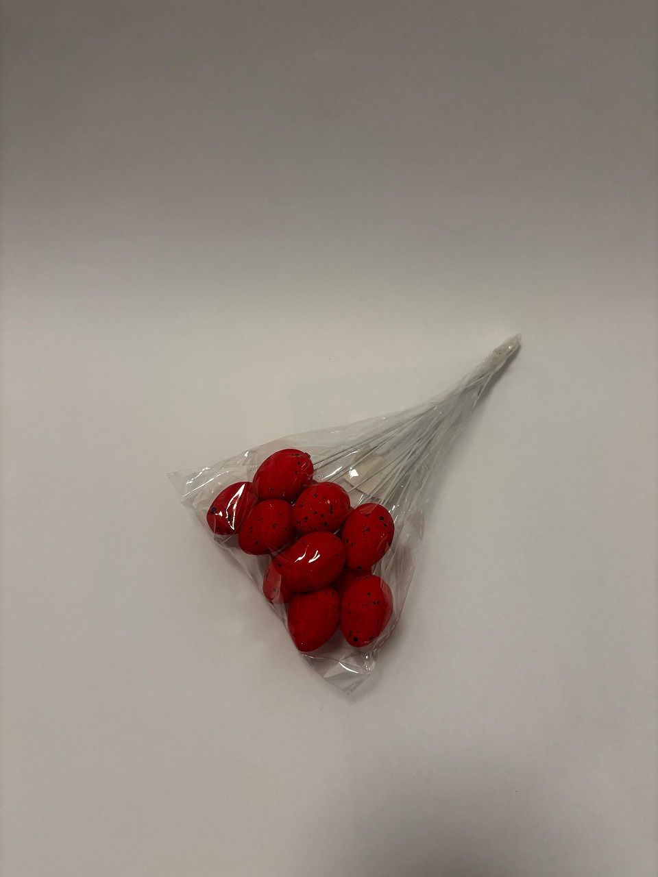 Specificatii: Set 12 bucati (mix rosu/galben), Lungime totala 20 cm (bat inclus), Dimensiune ou ~4 cm, Material polistiren decorat