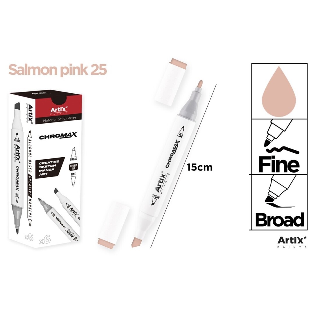 Creative marker with double tip and alcohol-basedink.Plastic body. 1 mm fine tip and 2-5 mm chiseltipfor precise lines. Ideal for making creativedrawings,sketches, manga, comics and any pencreation.Perfect for hobby artists, designers, andanycreative use. Wide range of colours to createanydesign.