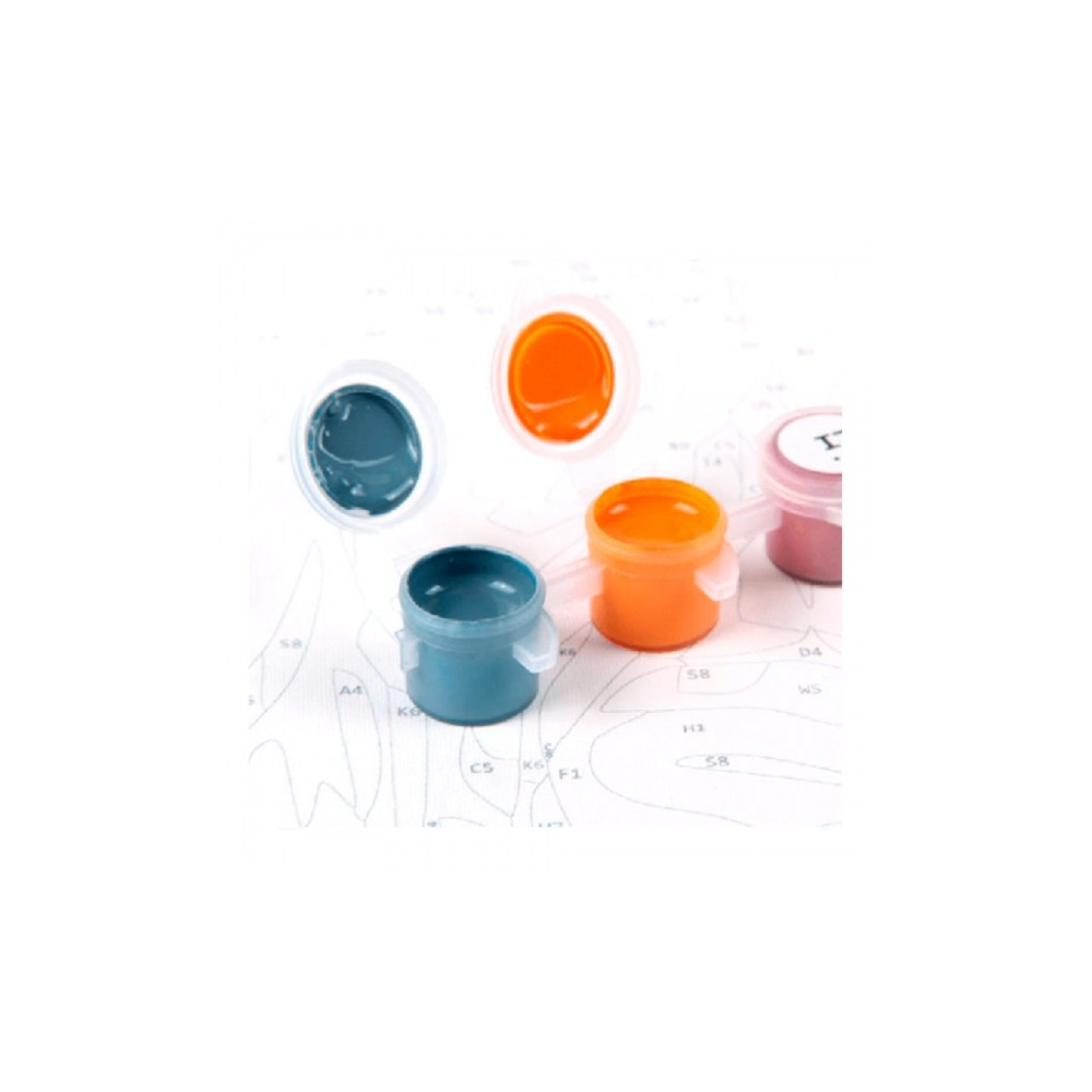 • Vopsele Gata de Folosit: Recipientele individuale sunt numerotate corespunzător zonelor de pe pânză, eliminând necesitatea amestecării culorilor.