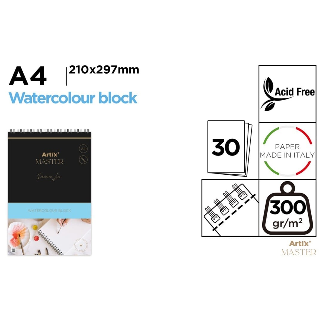 Bloc de Desen Acuarelă IPB A4 Artix Spiră 30 Coli 300g/m2 PB1021 - Hârtie de Calitate Superioară pentru Tehnici Umede