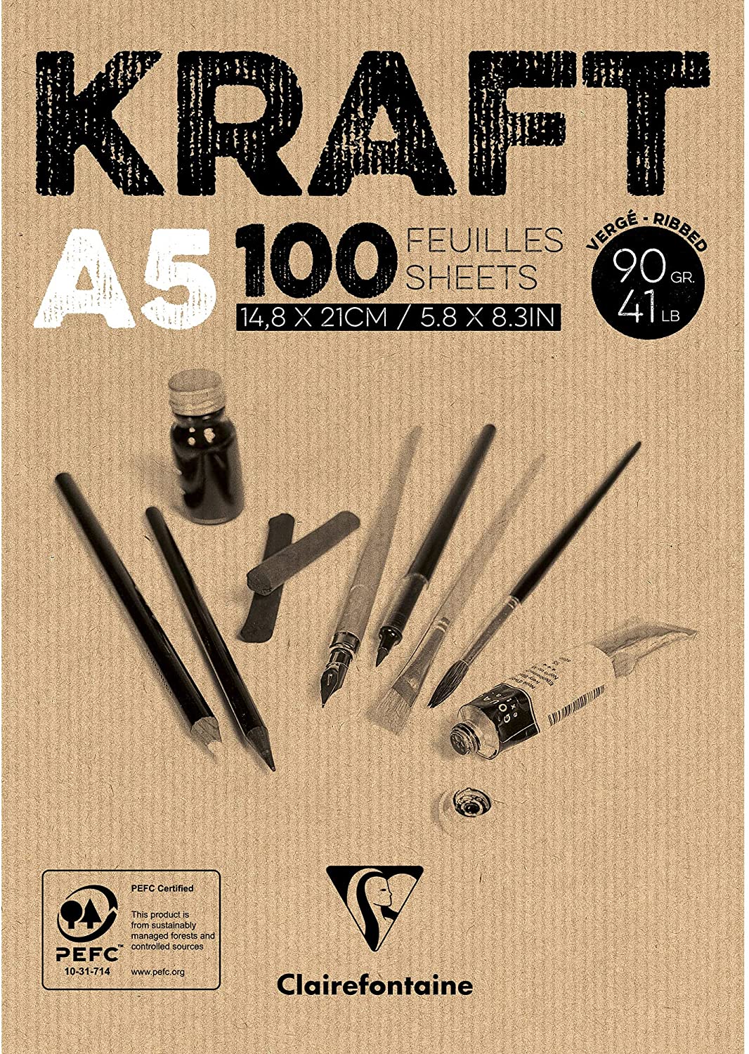 Bloc Desen A5 100f 90gr/M2 Kraft Vergé Brun, Double Face Clairefontaine 96544c