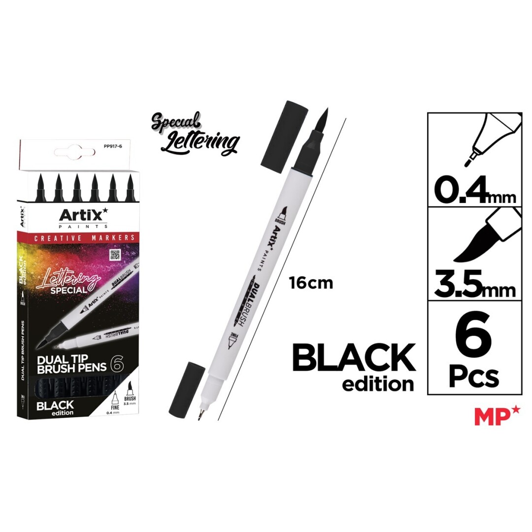Etichete: Durabilitate, IPB, Culori intense, Set de 6, Pasiune pentru artă, Ilustrații, Desen artistic, 2 CAPETE, desen, Black Edition, PP917-6, Linii fine, Detalii precise, Pensulă lățită, Spectru artistic, Experiență de desen fluentă, Proiect artistic, Expresie artistică, Proiecte creative, schite, Rezultate profesionale, marker cu varf de pensula