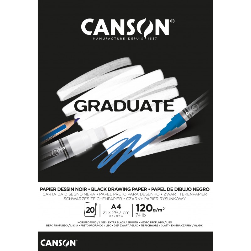 BLOC DESEN CANSON GRADUATE BLACK PAPER A4 20F, 120GR/M2 400110386