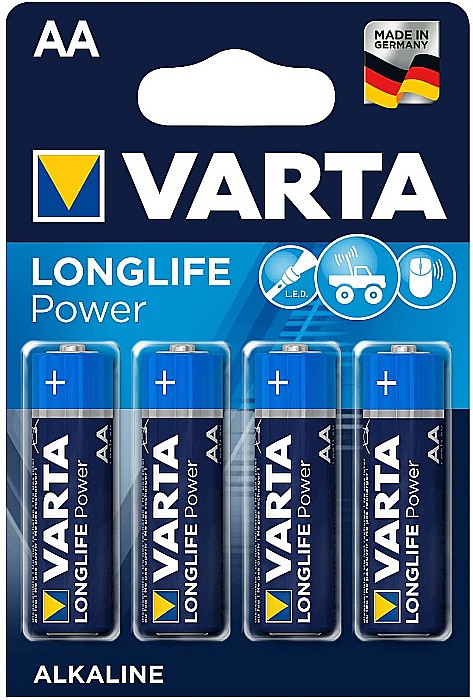 Baterii alcaline Varta Long Life Power AA, blister de 4 buc