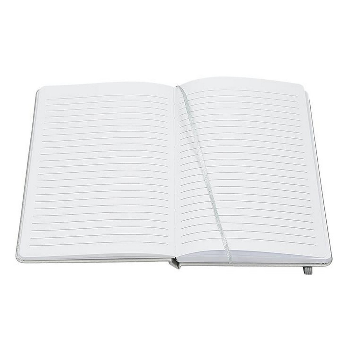 Carnetul se închide cu bandă elastică, care menține paginile protejate și organizate.