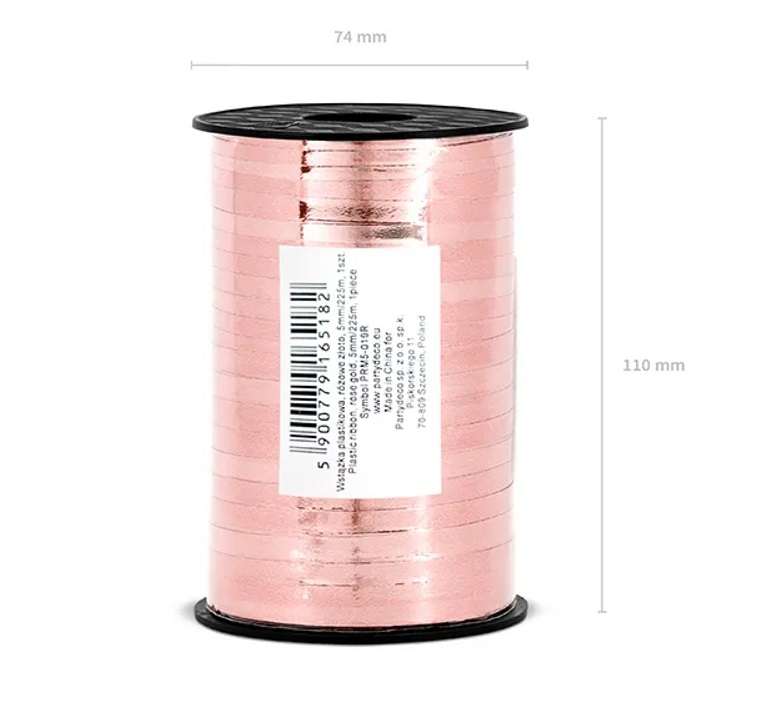 Panglică din plastic metalic, auriu roz, lățime aprox. 5 mm, lungime aprox. 225 m. 1 buc. / 1 buc.
