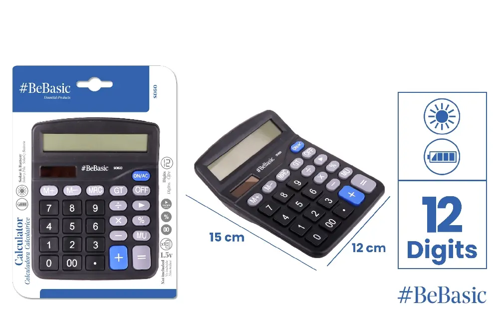 📦 CALCULATOR DE BIROU BeBasic – 12 DIGITS, NEGRU (S060)