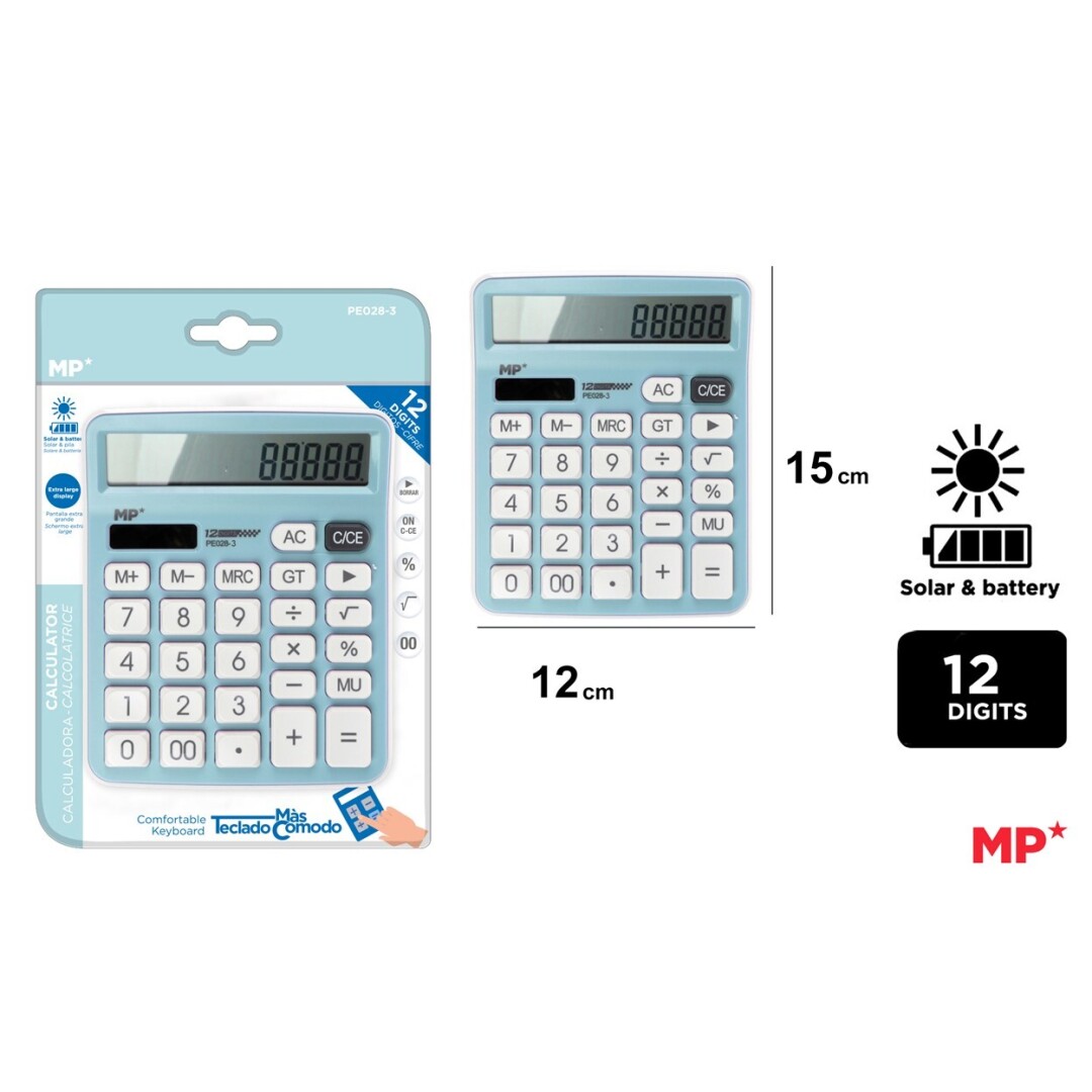 Calculator de birou cu 12 cifre, Calculator desktop cu 12 cifre. Funcționează cu energie solară și baterii. Ecran foarte mare. Tastatură ergonomică cu butoane mai confortabile. Grand Totalkey.Chei de memorie: MRC, M-, M+, MU, Grand Total. Tasta pentru a șterge ultima cifră introdusă. Cheie %, rădăcină pătrată și dublu 0. Dimensiuni: 150 x 120 mm. Albastru deschis. Blister de 1 unitate.