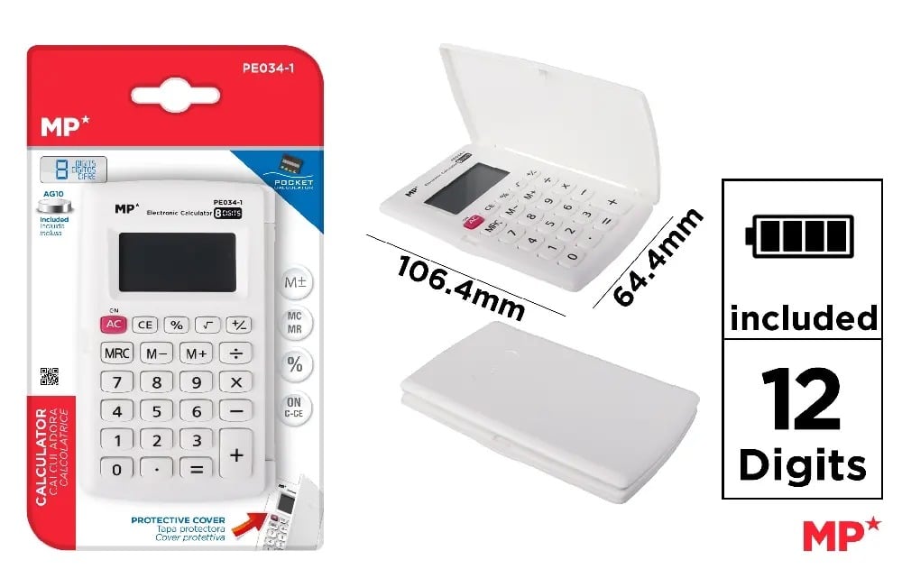 Etichete: Alb, Practic, fiabil, husa, baterie inclusă, Funcționalitate, transportabil, IPB 12 DIG, PE034-1, 12 digits, AG10, 106.4 mm x 64.4 mm, Husă de protecție, Cifre precise, geanta, portabil, Eficient, calculator buzunar