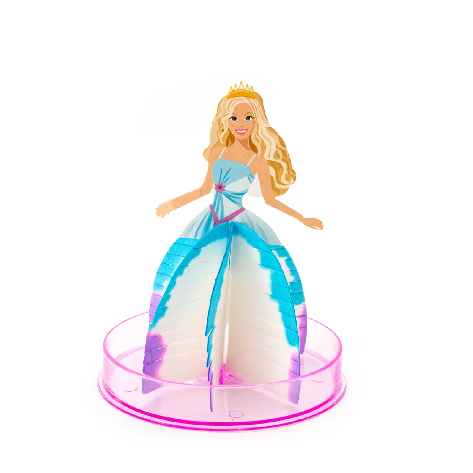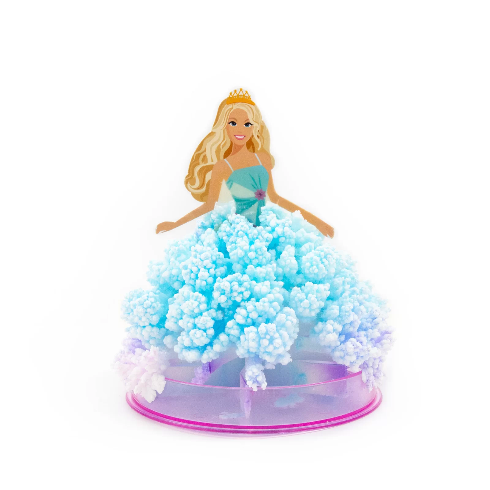 ✨ Include piese din carton pentru asamblare, suport și pungi speciale cu apă. După asamblare, trebuie doar să turnați apa inclusă peste rochița prințesei pentru a porni procesul de înflorire magică. În doar o oră, rochița va fi acoperită cu cristale colorate, creând un efect spectaculos și captivant.