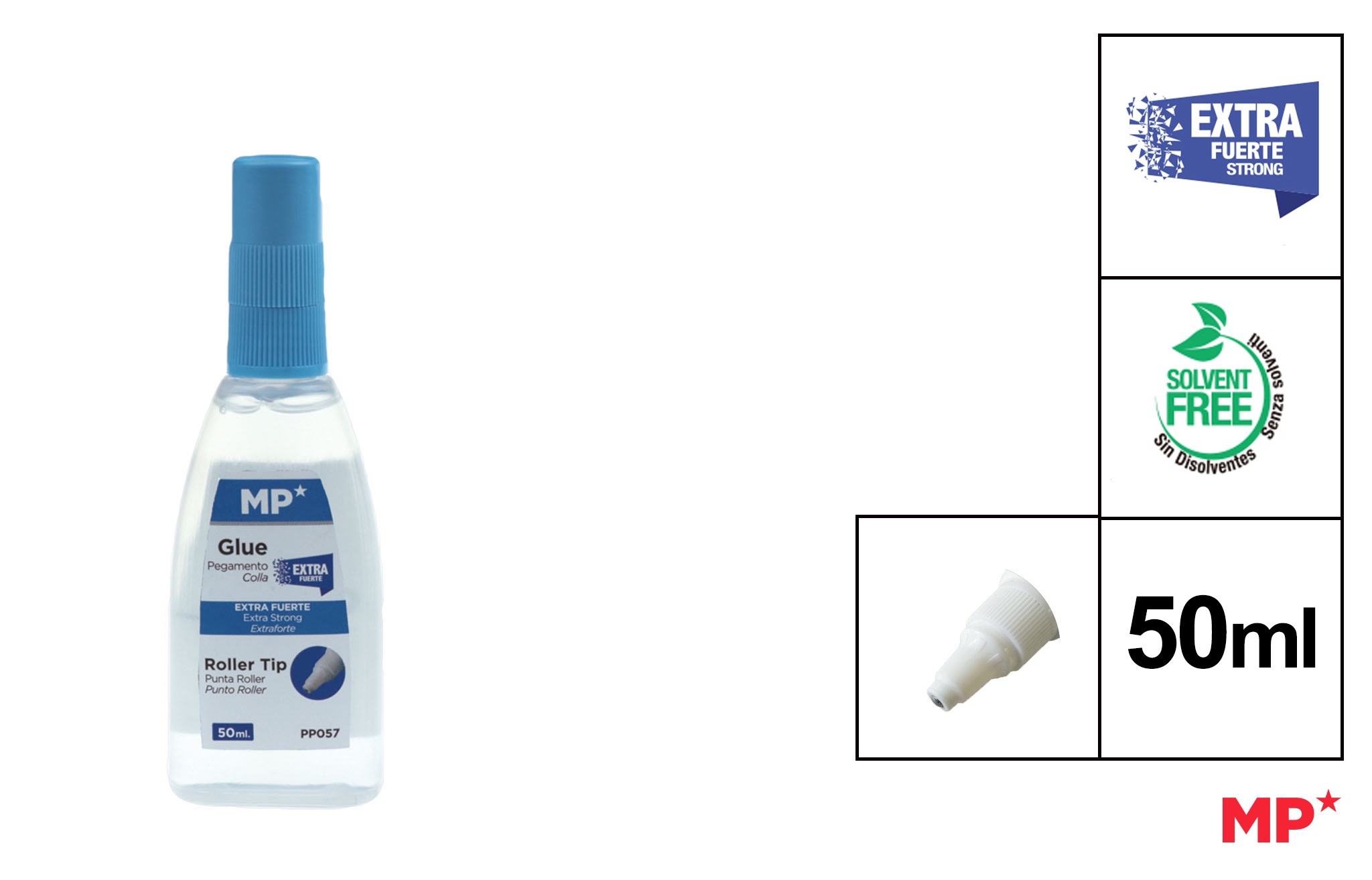 Lipici foarte puternic fără solvenți. Cu vârf de roler pentru o mai bună precizie la distribuirea și evitarea petelor de lipici. Fara solventi. Putere adeziva mare. sticla de 50 ml.