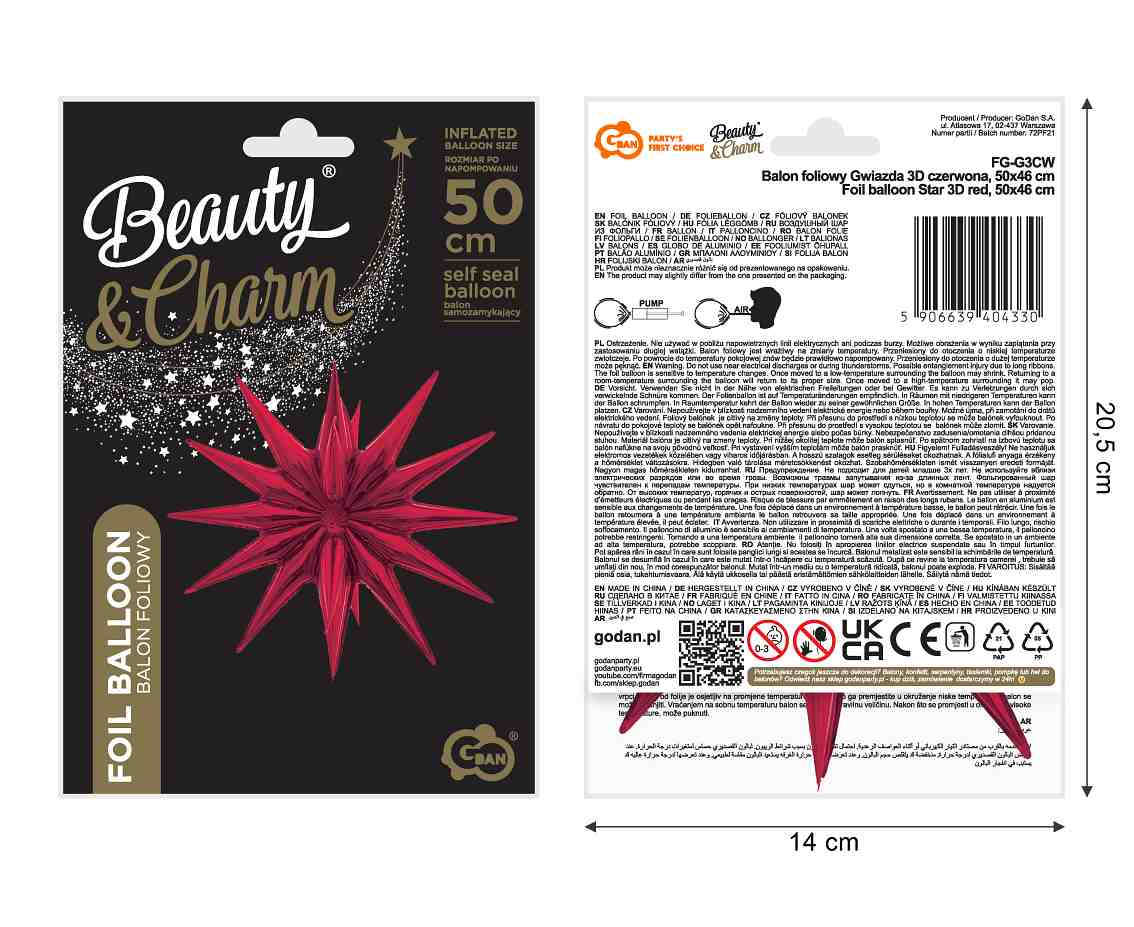 Acest balon din folie de aluminiu de la Godan S.A. este conceput pentru a adăuga un accent vizual puternic și festiv oricărui eveniment. Forma sa de Stea 3D și culoarea vibrantă de Roșu îl fac perfect pentru Sărbători, Ziua Îndrăgostiților, petreceri aniversare sau evenimente tematice.