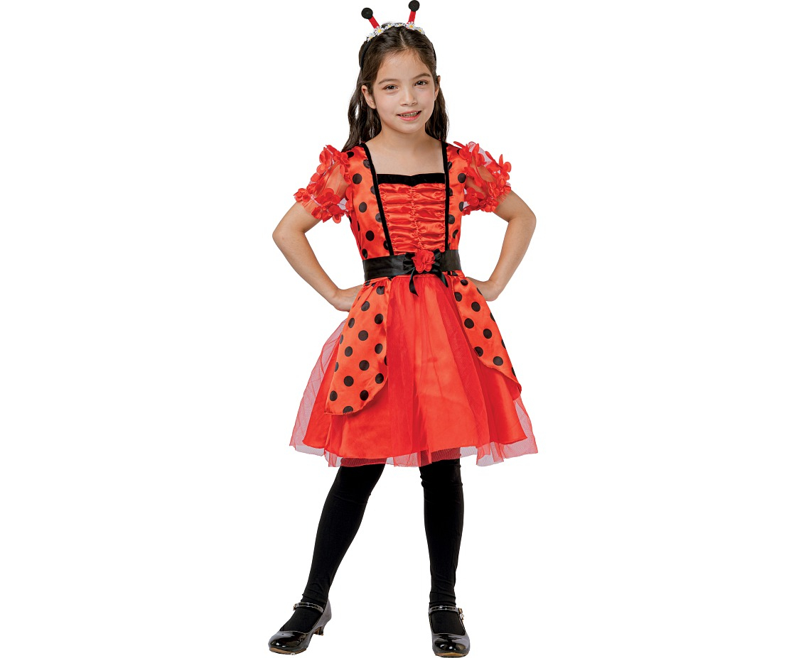 Costumul de buburuză pentru copii de 130/140 cm de la GODAN este perfect pentru petreceri, carnaval sau evenimente tematice, fiind format dintr-o rochie roșie cu buline negre, o curea neagră și o bentiță cu urechi de buburuză, toate realizate din poliester de înaltă calitate pentru confort și durabilitate.