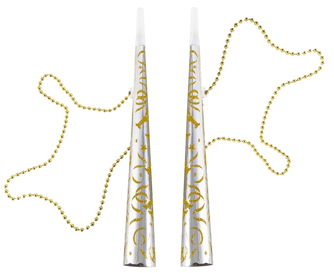 Trompeta Din Hartie Party Happy New Year, Chain, Silver With Glitter 2/Set Pf-Thnys