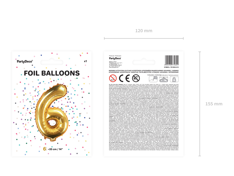 BALON FOLIE ALUMINIU NUMBER "6", 35CM, GOLD FB10M-6-019
