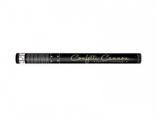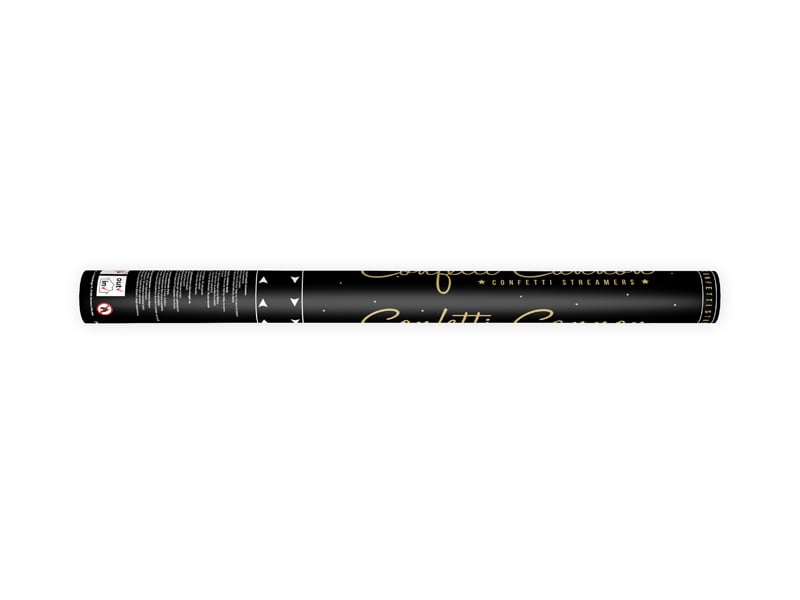 Confetti cannon with streamers, gold, 60cm Confetti cannon shooting out long gold metallic streamers, length 60 cm. 1 pkt / 1 pc.