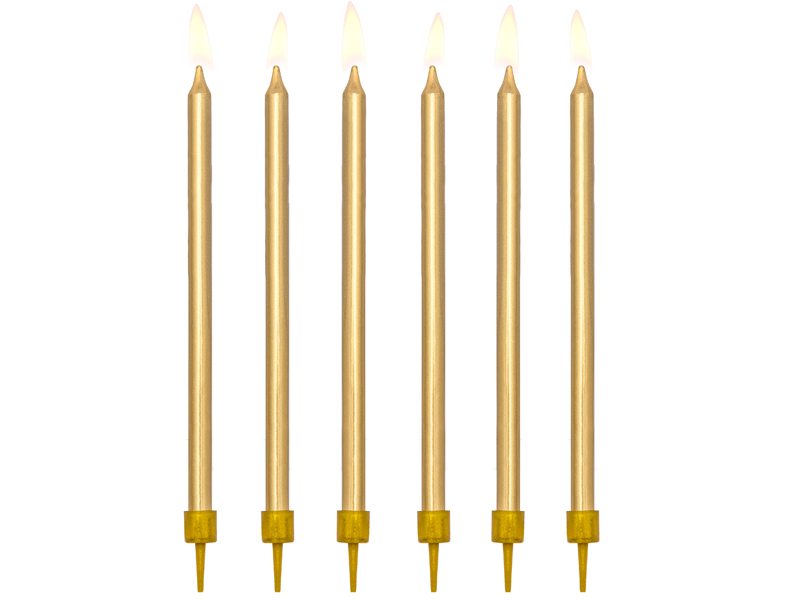 Birthday candles plain, metallic gold, size approx. 12.5 cm, set contains 12 candles and 12 holders. (1 pkt / 12 pc.)