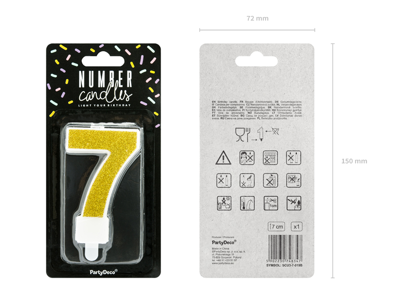 Birthday candle Number 7, gold, 7cm