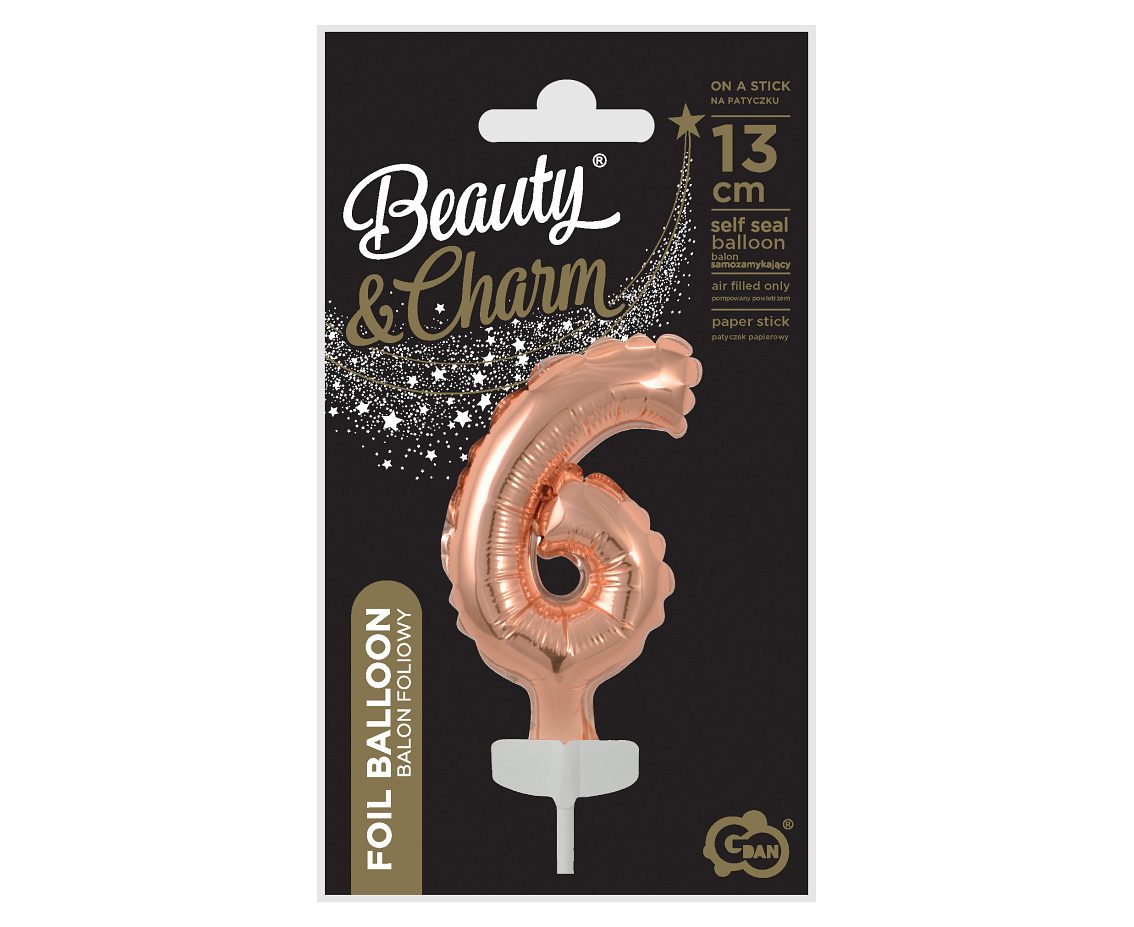 Etichete: balon, Folie, Băț, ROSE-GOLD, Number 6, BC-5RZ6, Numere 6, Umplute cu Aer, stick, baloane, aluminiu, 13cm