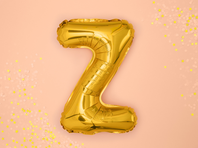 Metallic foil balloon Letter "Z", gold, height approx. 35 cm (14").