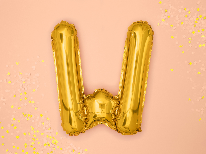 Metallic foil balloon Letter "W", gold, height approx. 35 cm (14").