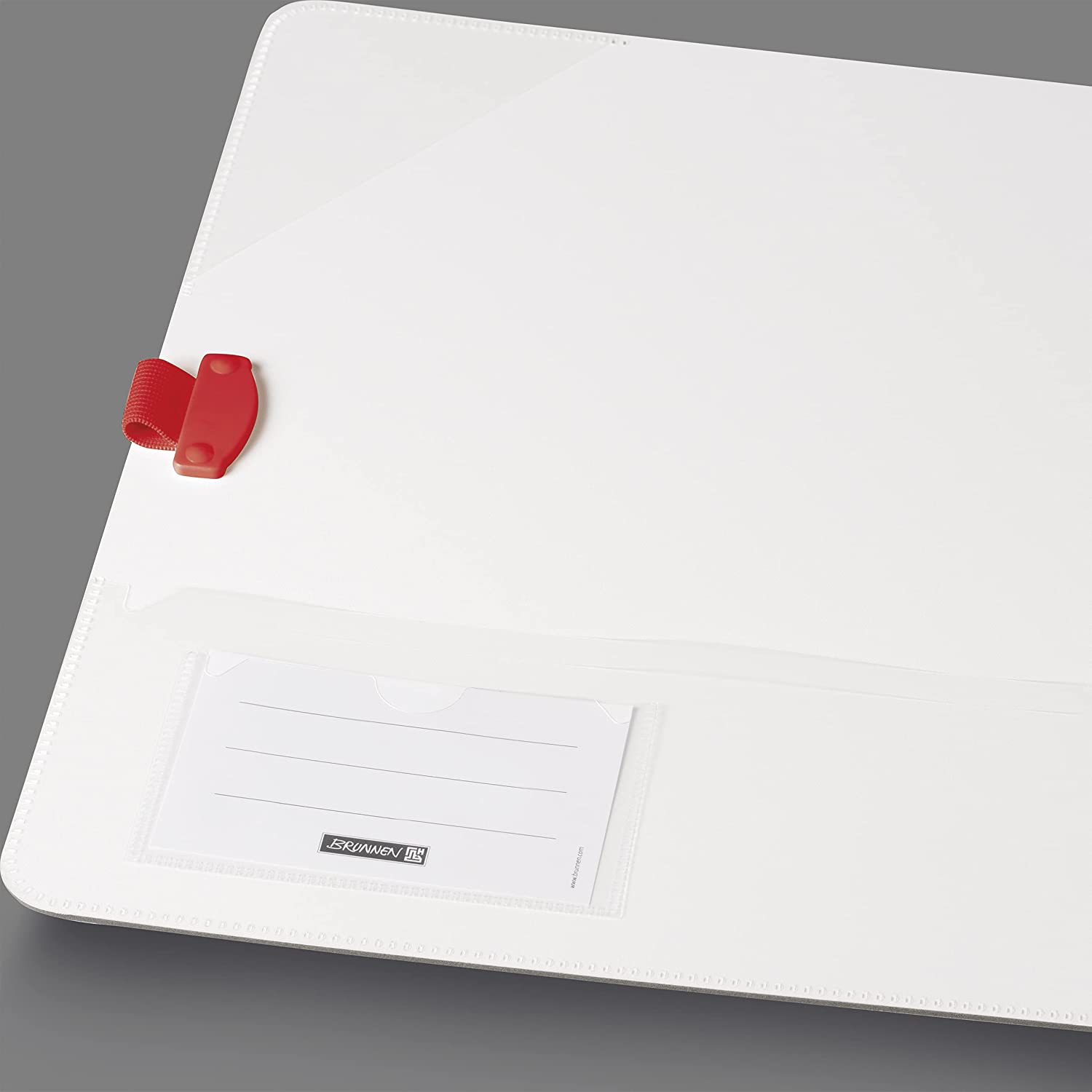 Buclă pentru pix, închidere elastică, buzunar pe coperta frontală, spate plat cu etichetă de scris