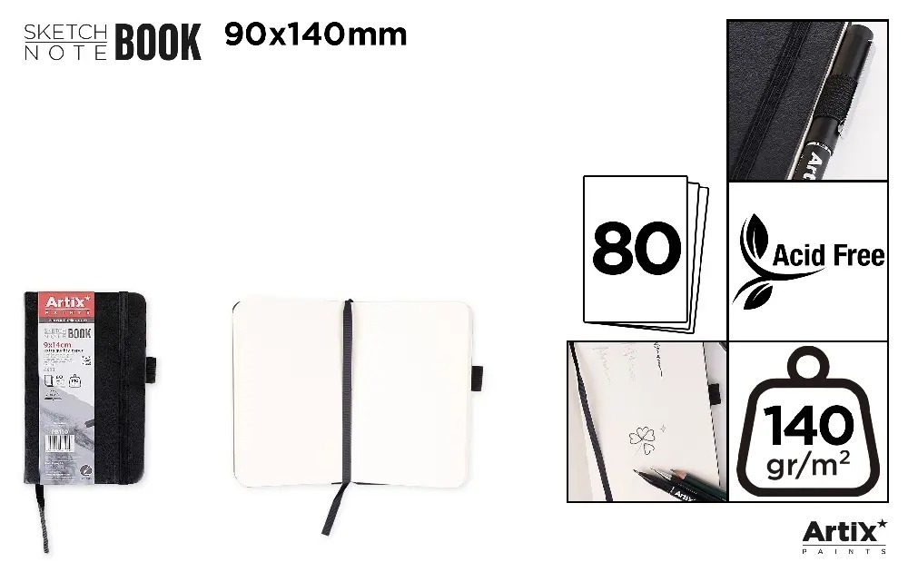 Dimensiunea sa mică (9 x 14 cm) îl face ușor de transportat în geantă sau rucsac, ideal pentru schițări rapide, ilustrații și jurnal artistic.