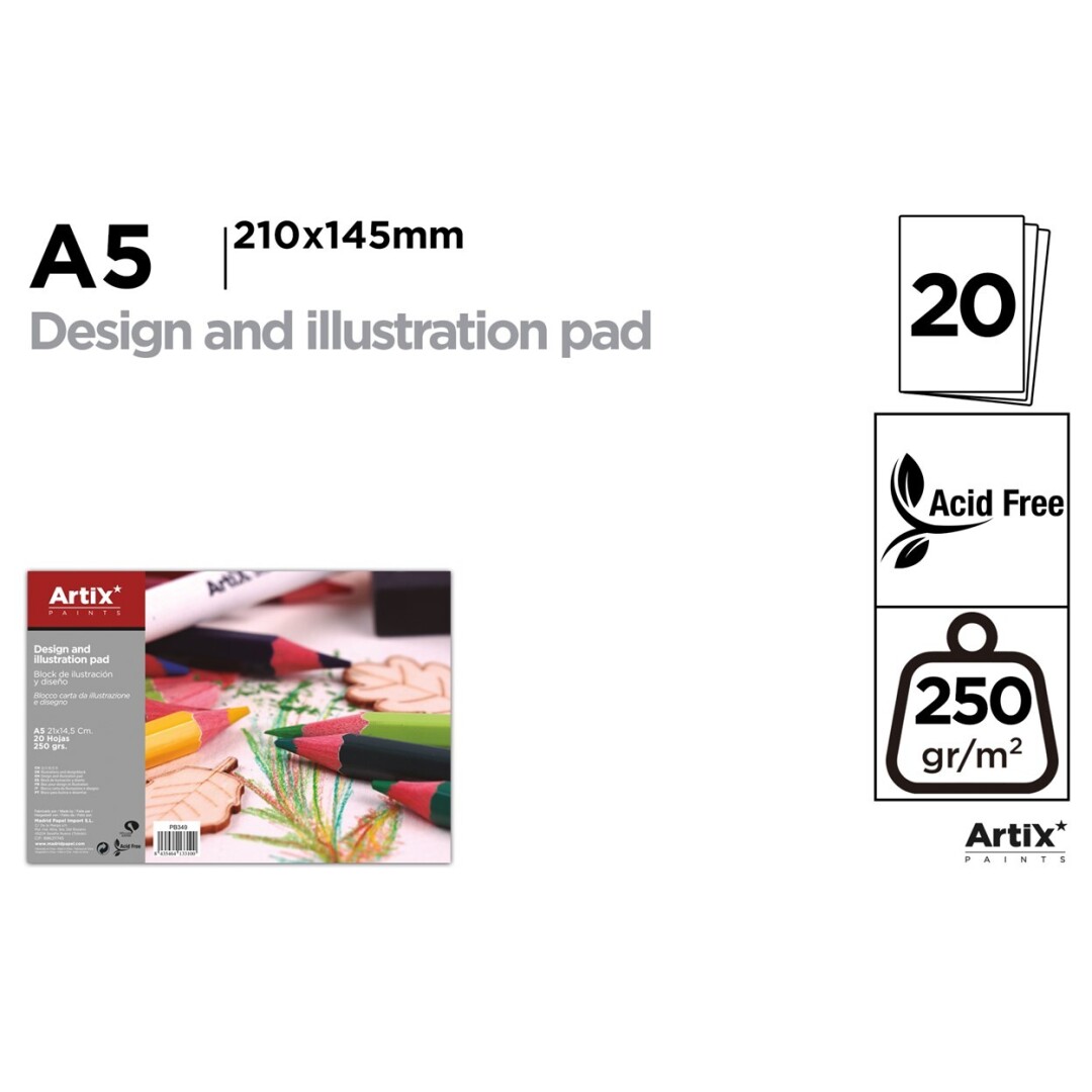 Blocul de desen și ilustrații IPB A5 ARTIX cu 20 de coli de hârtie de 250g/m2 este sursa ta de inspirație artistică.